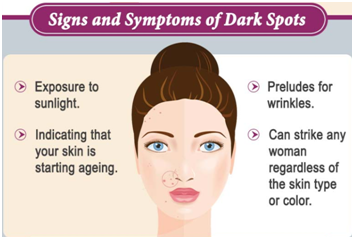 Dark spots or pigmentation occurs when a localized patch of melanin which accumulates on a specific area on the skin. The process of darkening of skin or pigmentation is referred to as melanogenesis. Mainly it can be located on the forehead, face or cheek bone area. There can be tiny black dots on skin or face known as freckles.