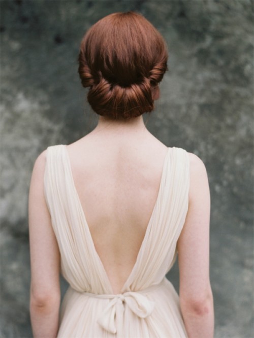 A rolled chignon is extremely sophisticated, while providing a subtle gentleness to your entire look. In order to provide your hair the boost it requires, flip your head upside down and then blow dry your hair. Create a middle parting and remove small sections on either side of the parting, towards the crown of the head. Tease the crown lightly to create a sense of volume, but make sure that there is just a mild bump. After this, you can start rolling the hair into the chignon and make sure that the sections are secured with pins. You might have to use hair spray to ensure that the hair stays in place. Drape the sections from the front, moving it towards the back and make sure that the tops of the ears are covered gently. These sections should then to be twisted into loose coils, which should sit right above the bun.