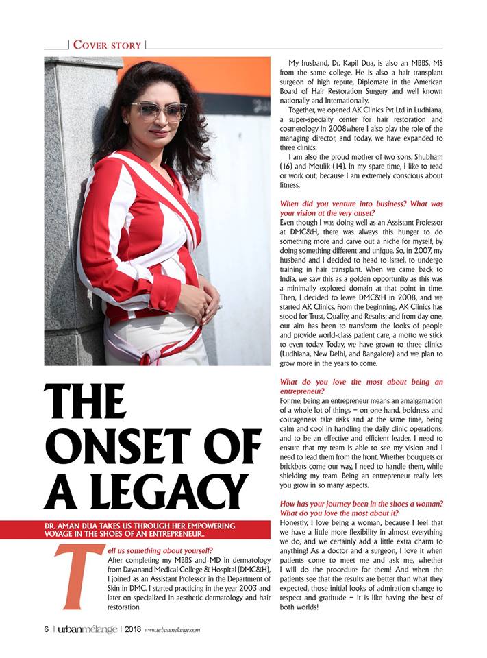 Dr. Aman Dua’s journey of establishing herself as a successful doctor entrepreneur published on renowned lifestyle magazine