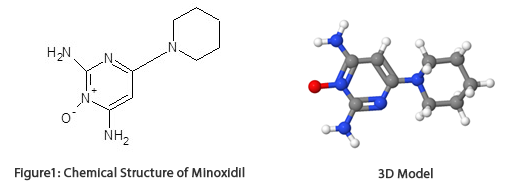 Chemically, Minoxidil is 6-(Piperidin-1-yl) pyrimidine-2, 4-diamine 3-oxide used as hair growth stimulator. In US pharmacopeia, Minoxidil is used officially under the labeled amount i.e. not less than 90% and not more than 110%.