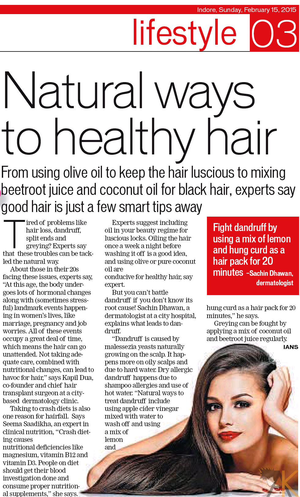 Check the coverage on “Natural Ways to Healthy Hair” by Dr Kapil Dua in Hindustan Times City.