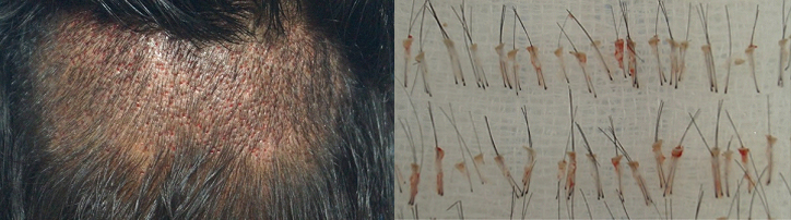 In cases where the patient’s hair is weak and there is the possibility to perform procedures between hair-strands, especially if hair-loss is limited to small area and needs to be harvested, usually up to a 1000 follicular units being enough for the coverage of hair loss, then the hair transplant surgeon may consider to perform a complete ‘unshaved’ session.
