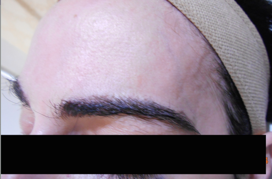 Finally, the patient approached us asking for a restoration of the left eyebrow earlier this month.